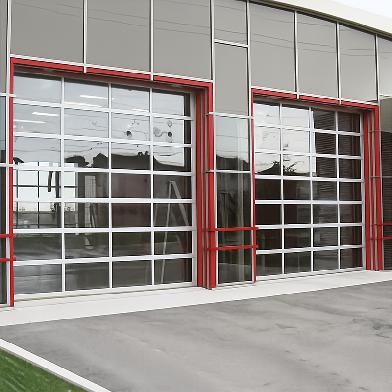 Our company can provide transparent garage doors in two sizes. One is the residential transparent garage door and the other is the industrial transparent sectional door.